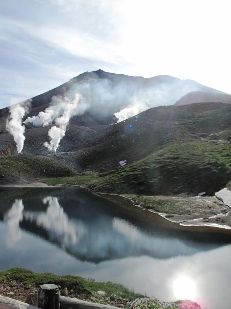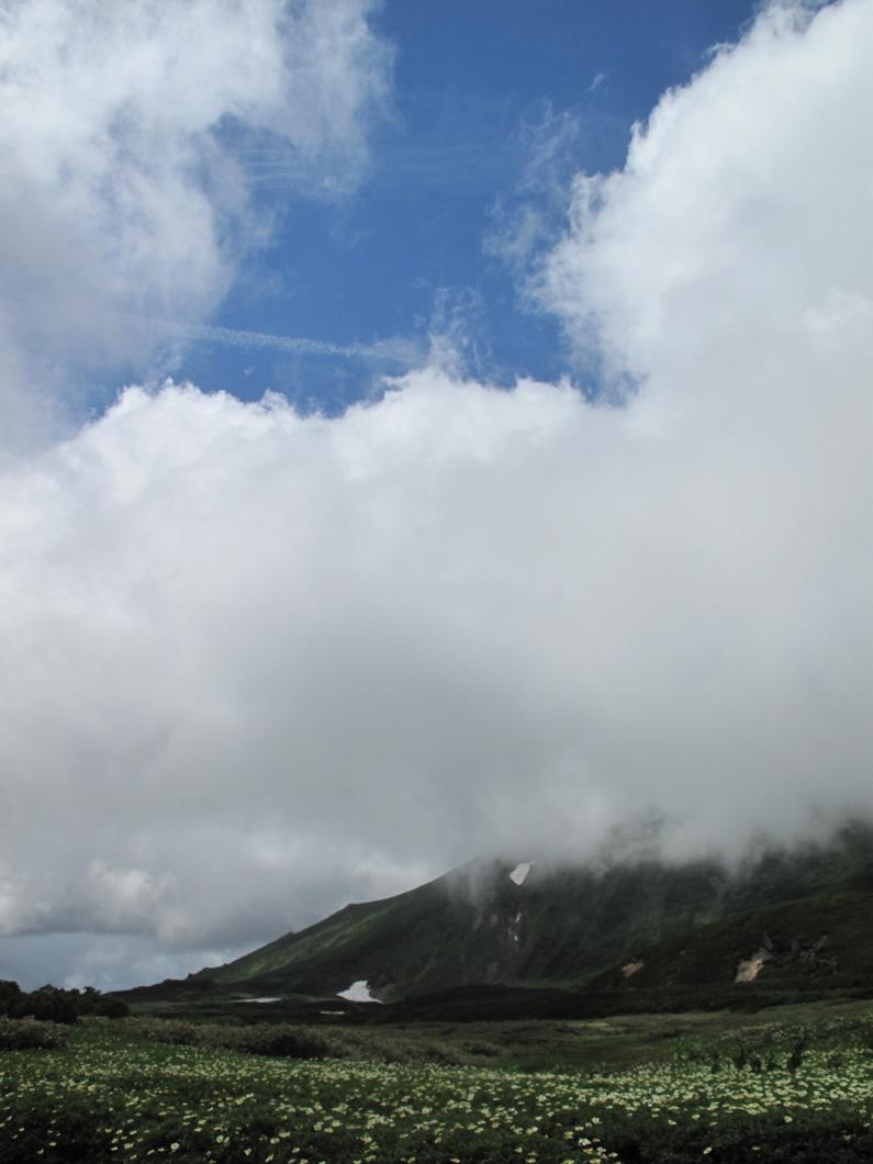 小雨交じりの曇り空で、旭岳連峰はまったく見えませんでしたが、