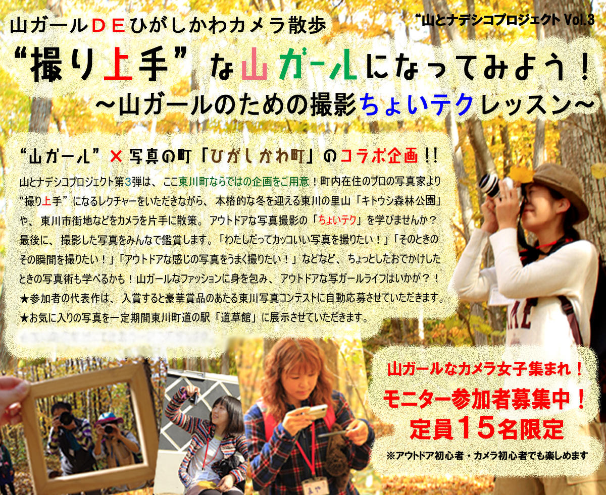 ①ひがしかわ写真 ②山ガールな写真 ③お気に入りの写真を
