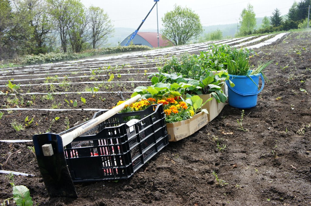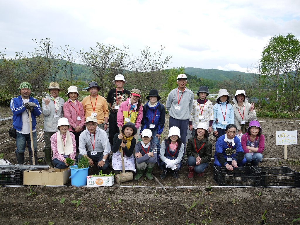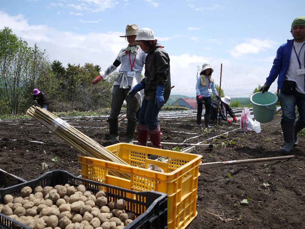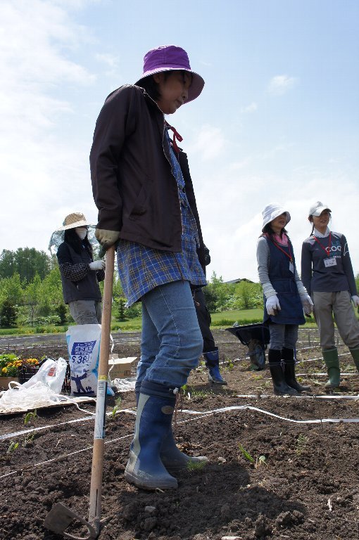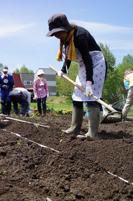 自分で管理する「わたしの区画」で、スタッフの指導のもと、ジャガイモととうきびを育てていきます。それと一緒に共同管理区画で、参加者みんなでいろんな野菜をつくっていきます。