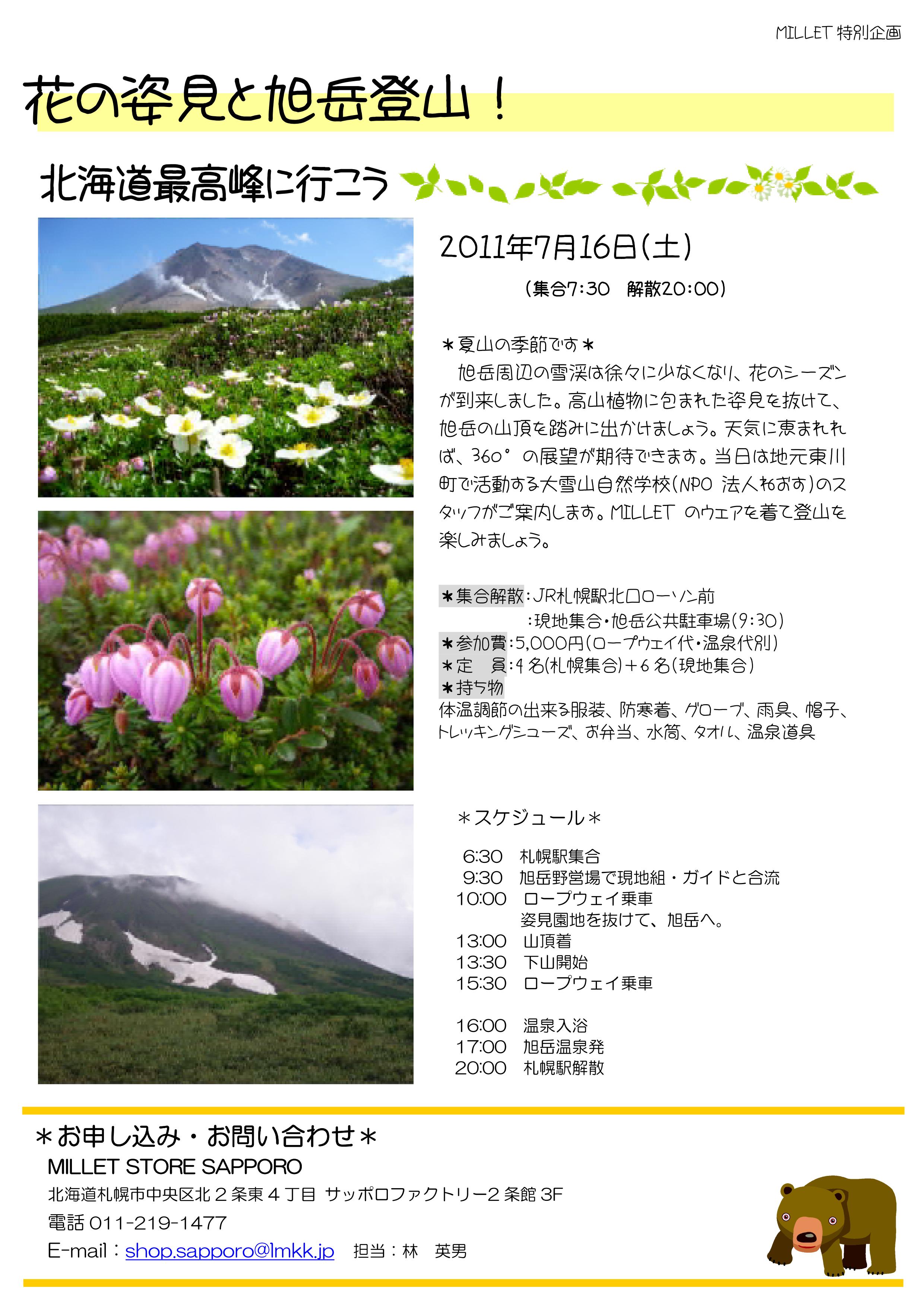 札幌店のミレースタッフさんと一緒に楽しく旭岳に登る企画。なんと札幌から発着です。