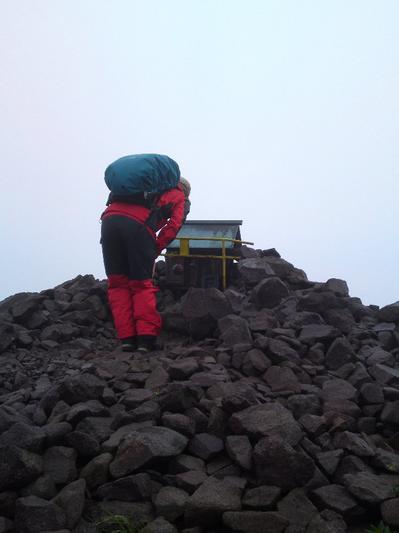 山頂はすごい風