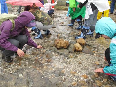 何も知らない人たちだけで歩くと、ただ雪解け水や雨水が流れている川でしかありませんが、ネイチャーガイドさんがいると、こうして"発見"があるわけです。