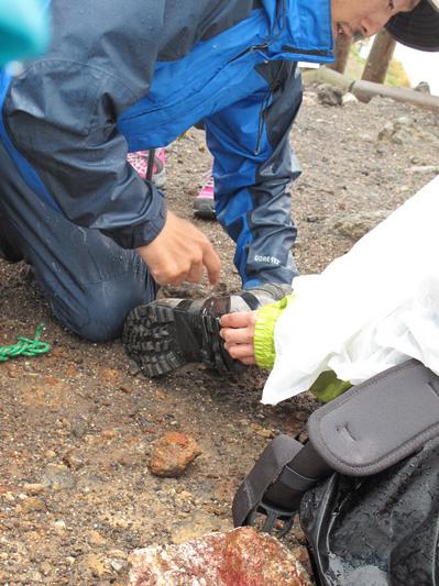 なんと、参加者のトレッキングシューズのソール(靴の裏ゴムですね)が、剥がれてしまいました!