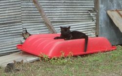 さあさあそんなこんなで折り返し地点ですが、今日は北の住まいさんを通り越してすぐの道を曲がってみました。すると廃屋が見えてきたので、注目してみるとネコの棲み処に遭遇!