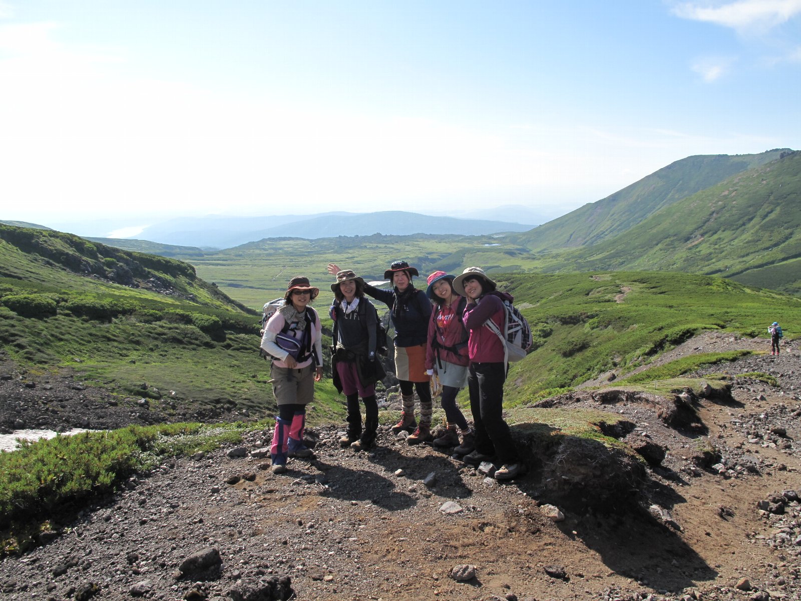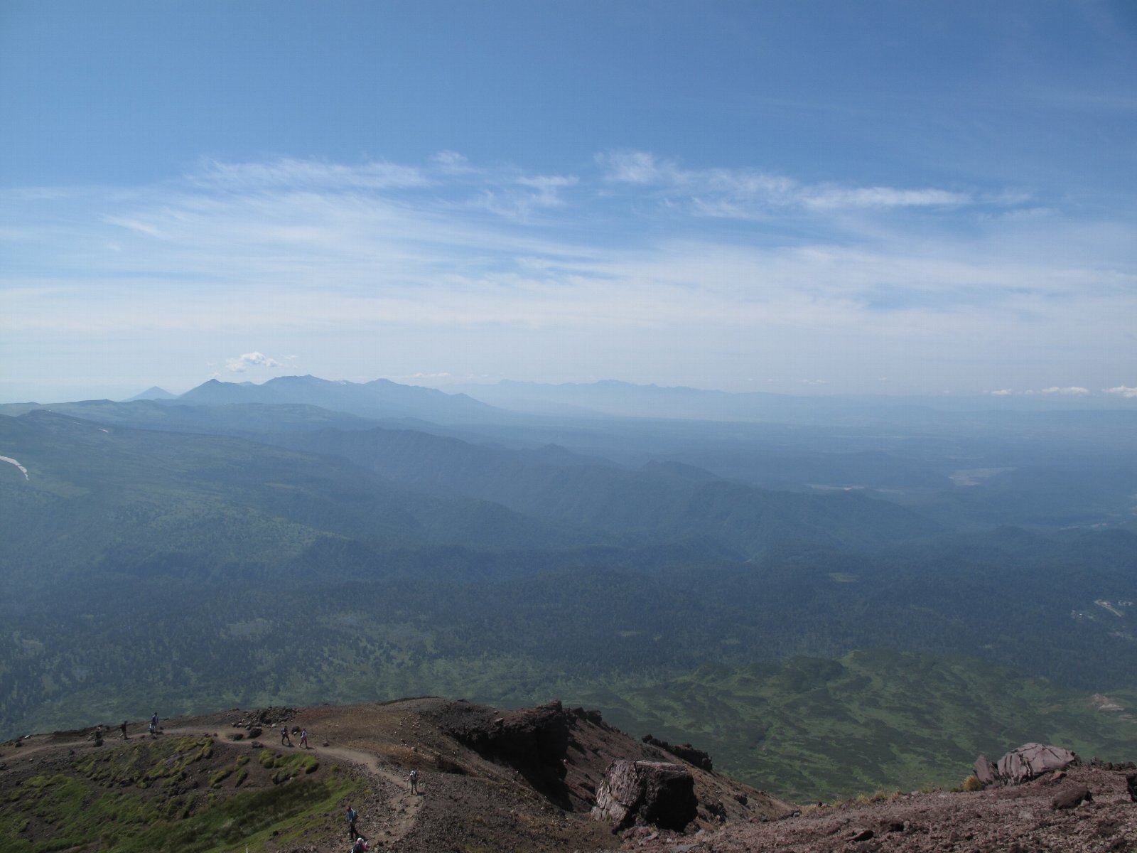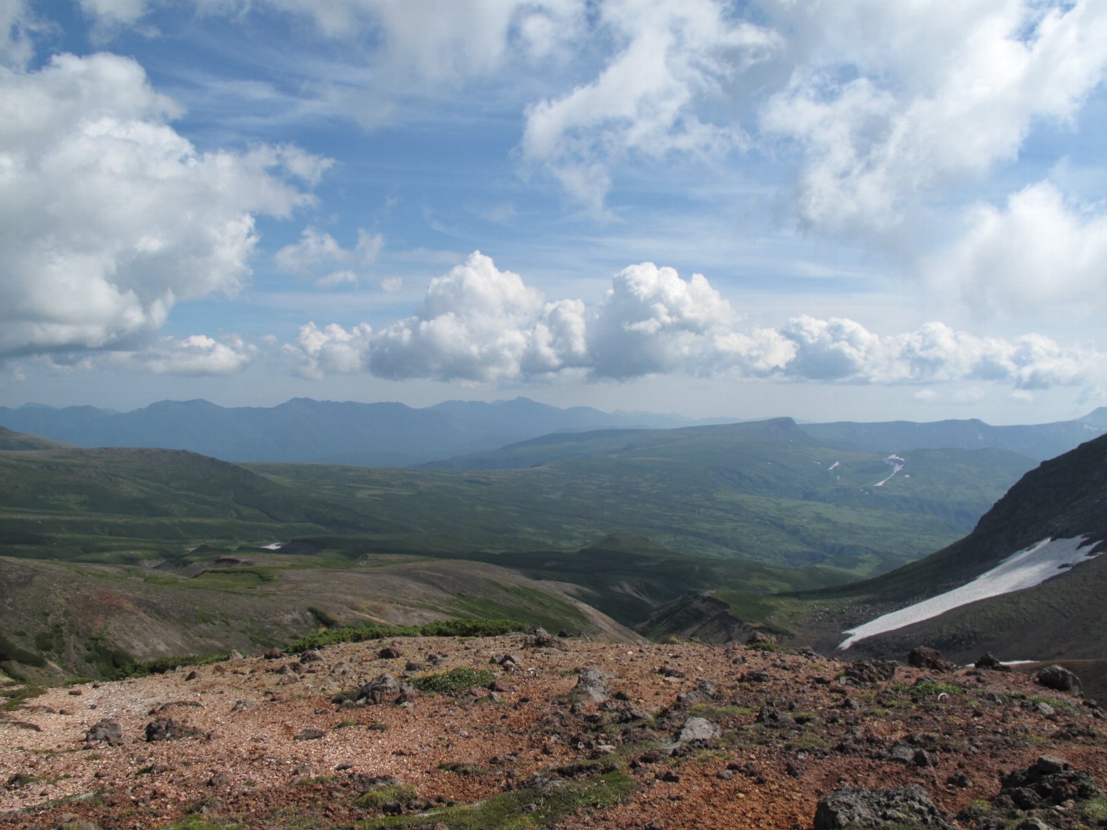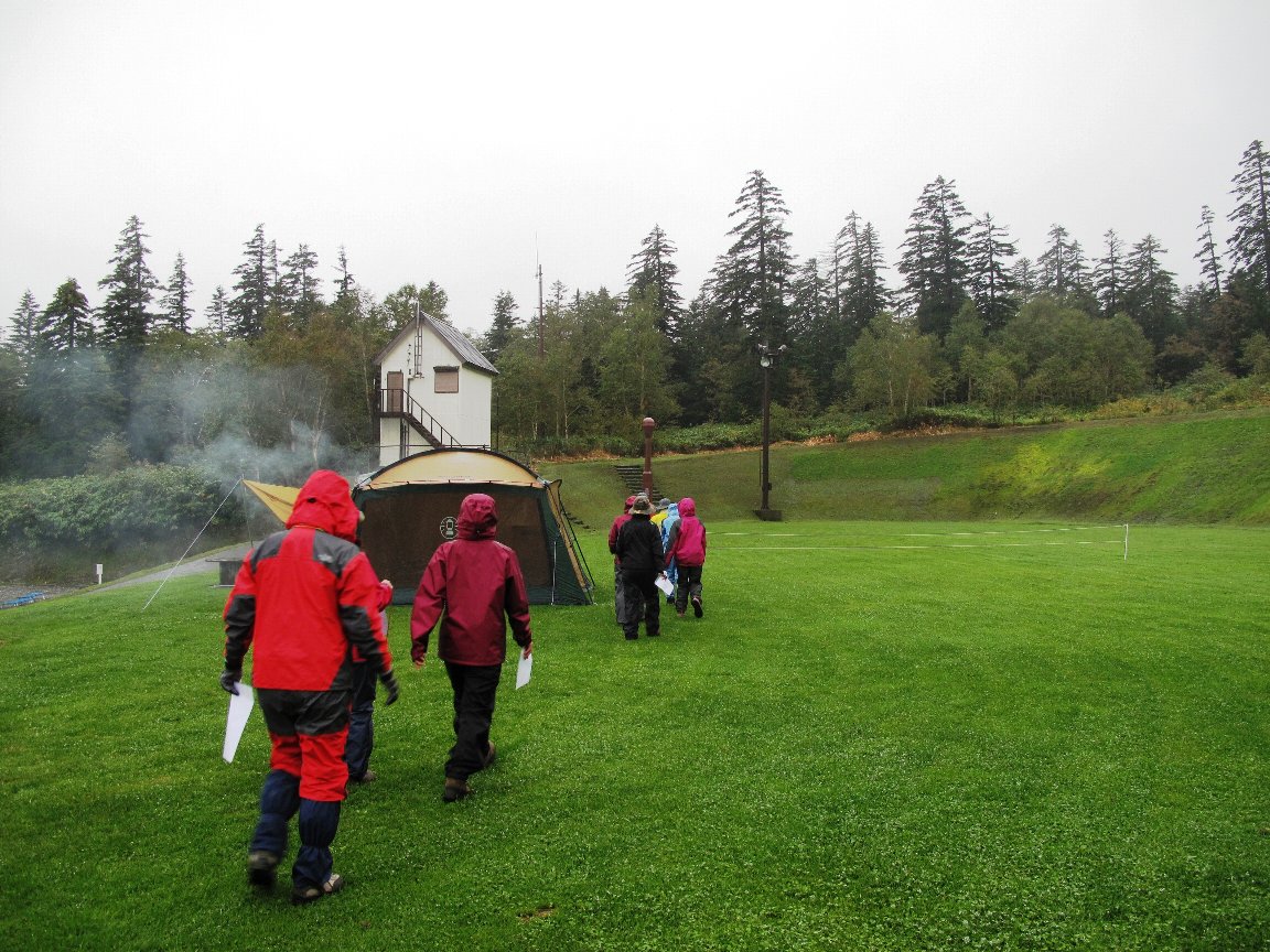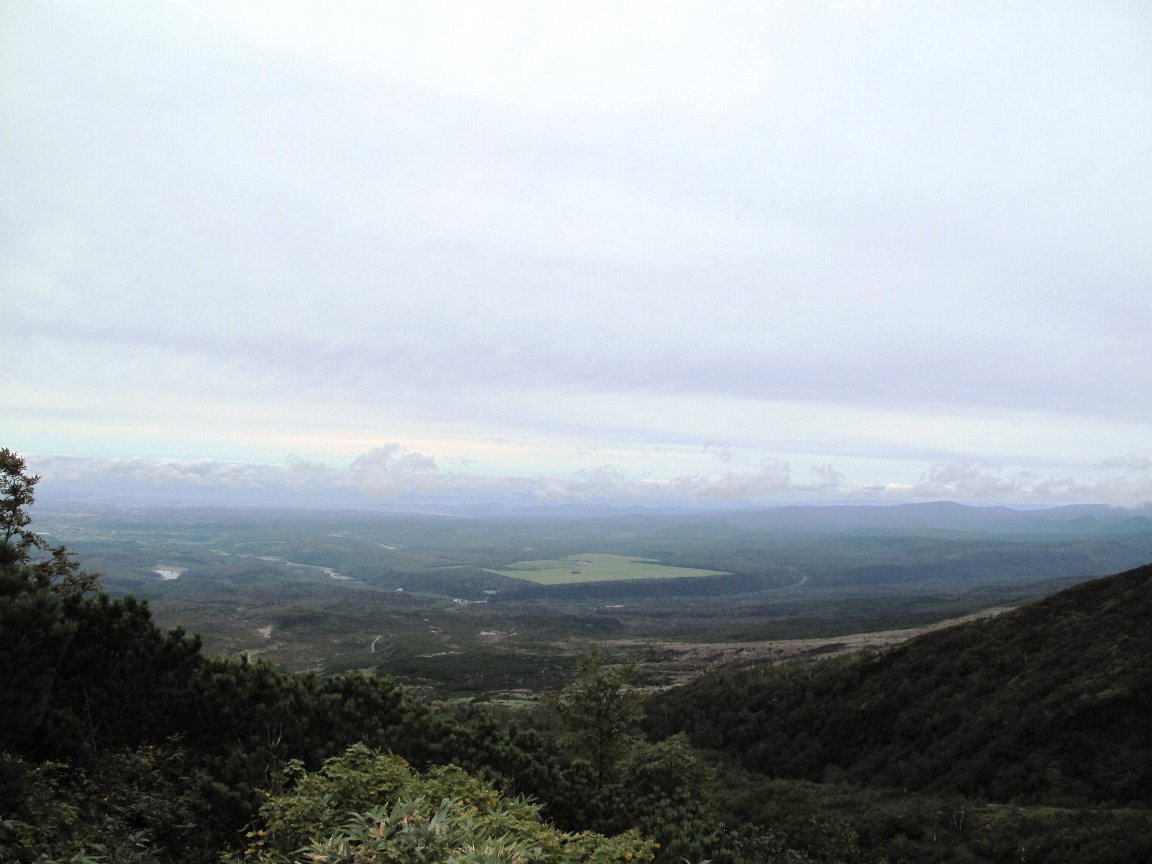 左の写真は上の写真とほぼ同じポイントから、今度は大雪山方面を向いた画像。アグリッテックの事務所があるラトビア館も見えるかな?