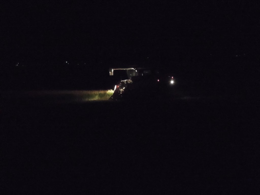 かすかに写るコンバインの光で